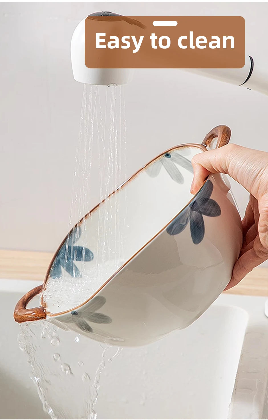 1500ml Household Ceramic Soup Bowl, Salad bowl with Double Handles β Large Capacity