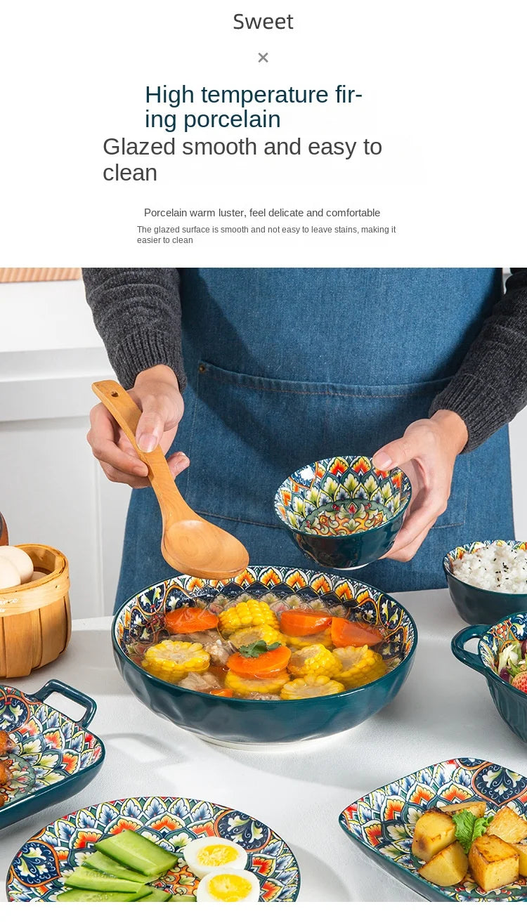 Whether for family meals, casual dining, or entertaining guests, this Bohemian retro dinnerware elevates every meal with style, quality, and versatility.