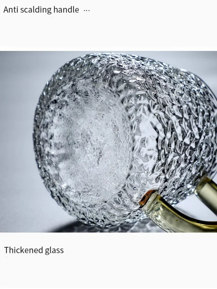 This hammer patterned glass mug combines practicality with modern aesthetics, making every sip feel special. Whether youβre enjoying a hot cup of coffee in the morning or an iced tea in the afternoon, itβs the perfect stylish companion.