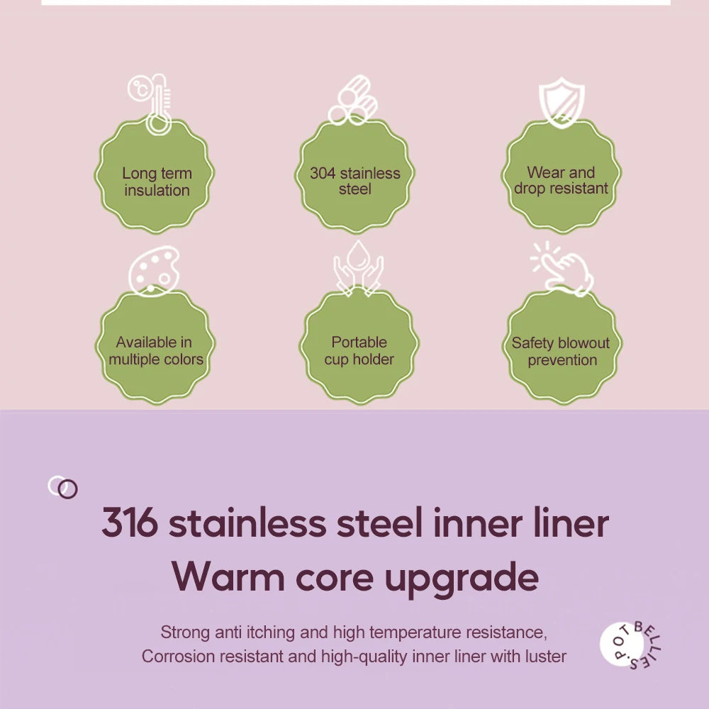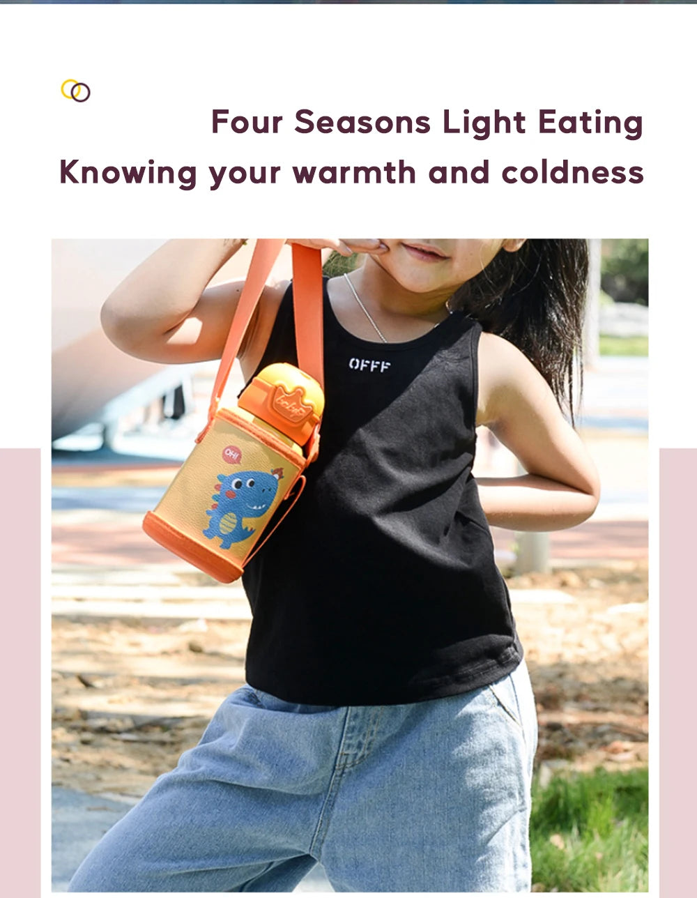 The 500ml capacity is just the right size for school days, trips, or outdoor adventures, while the leak-proof lid ensures no messy spills in backpacks. It also comes with a matching carrying cover bag and strap, making it easy for kids to carry hands-free wherever they go.