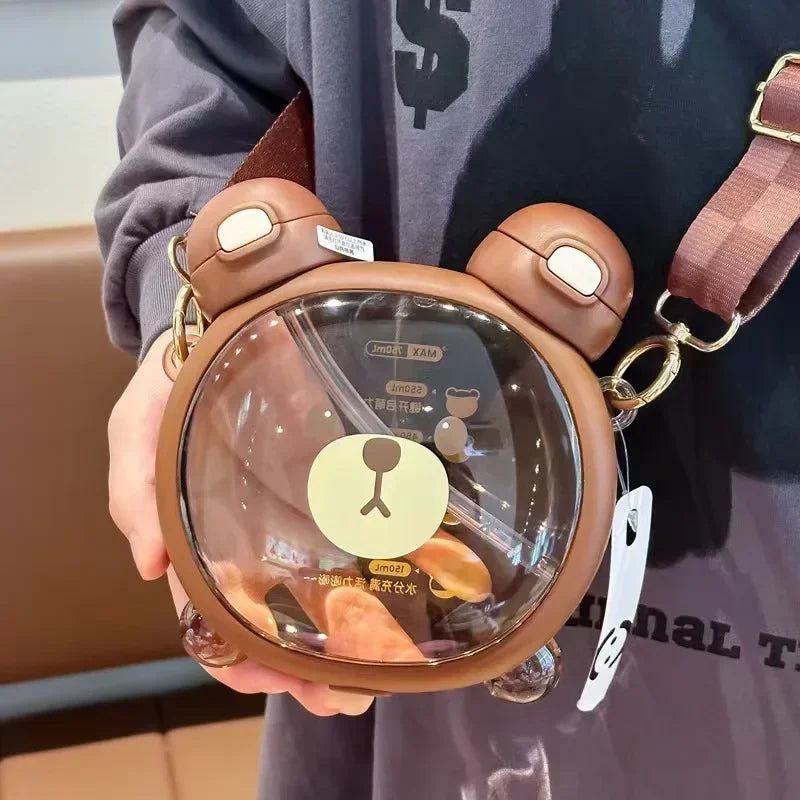 750ML Cute Water Bottle with Straw & Removable Strap