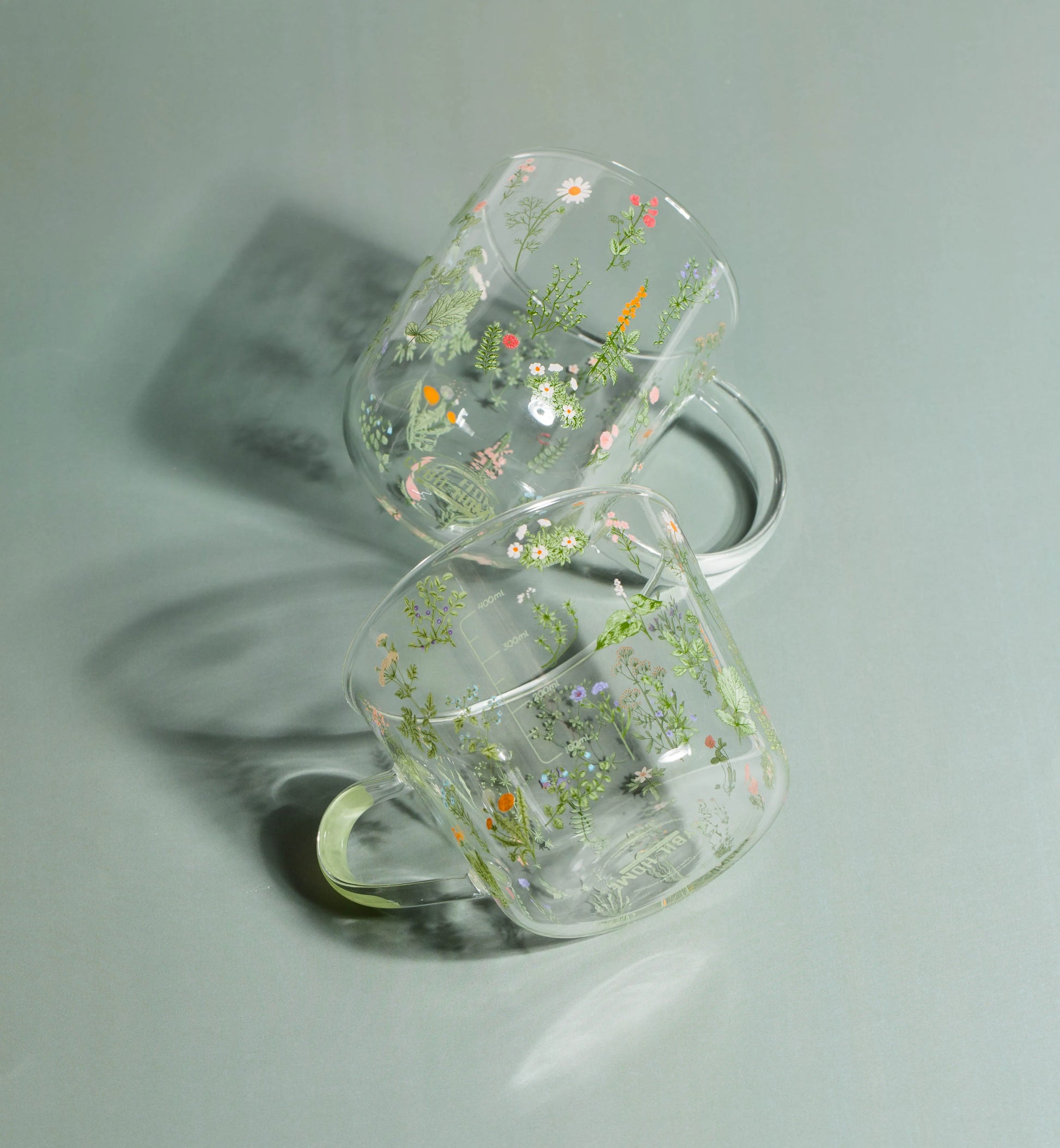 Green Botanical Pattern Borosilicate Glass Cup – 450ml & 500ml Sizes Available