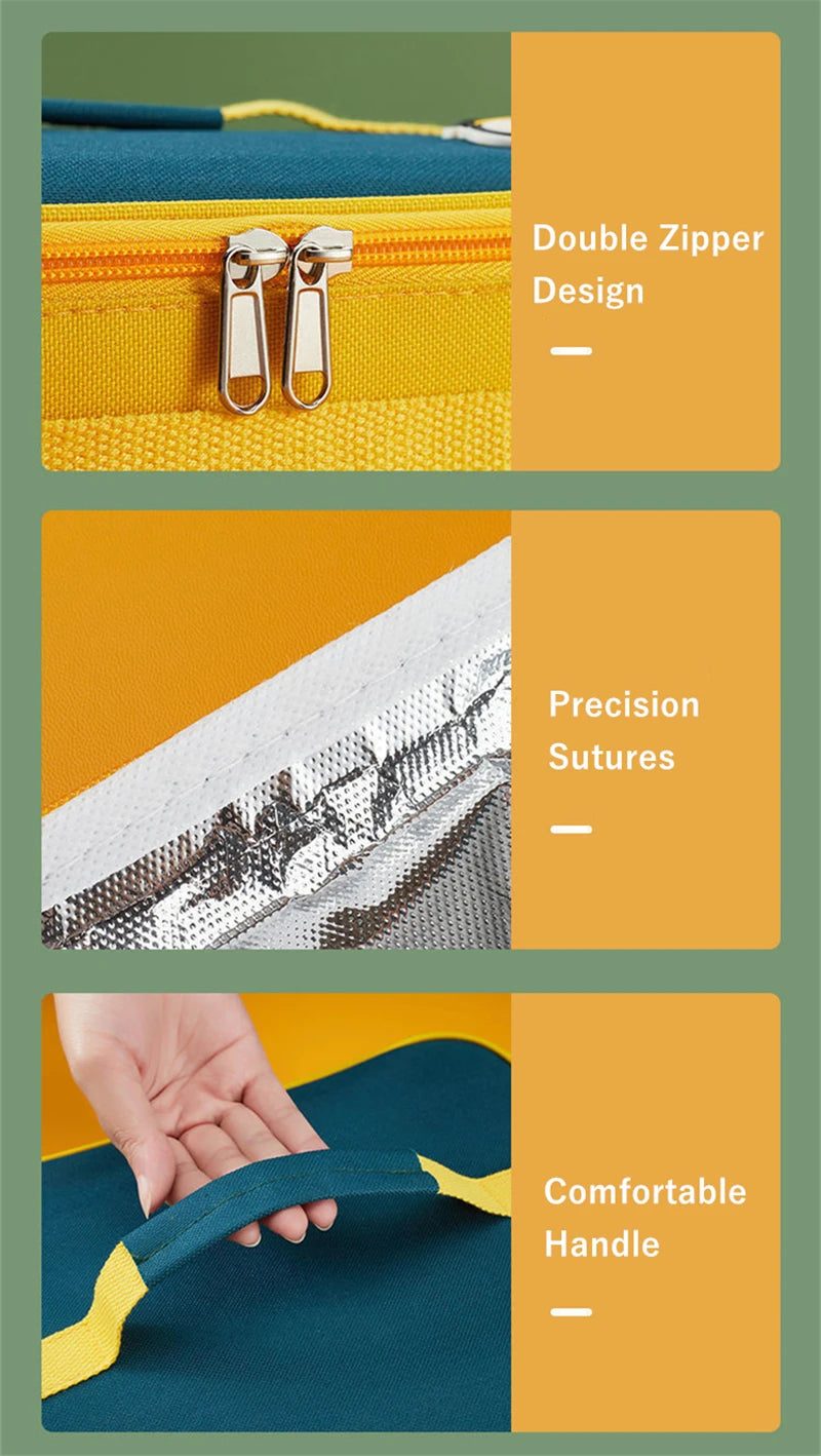 - Three-layer insulation combining Oxford cloth, thermal insulation cotton, and aluminum film to lock in heat or keep items cool.