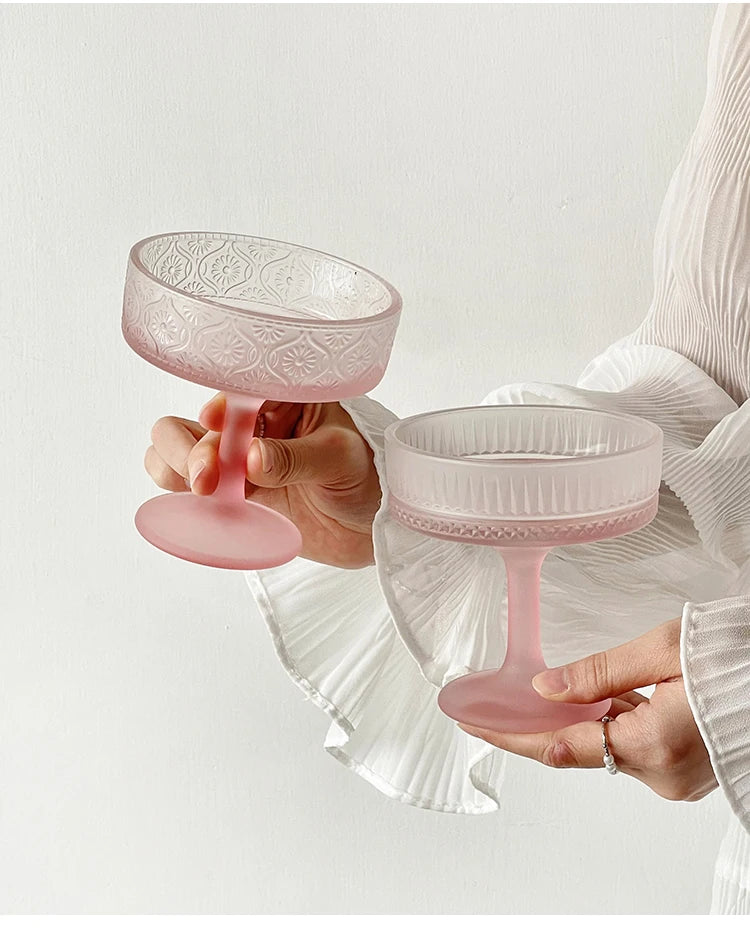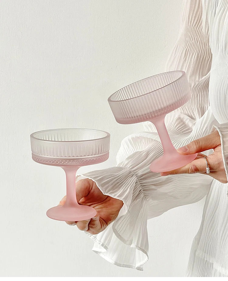 Premium Pink Frosted Highball Glass β Elegant Cocktail & Champagne Glass