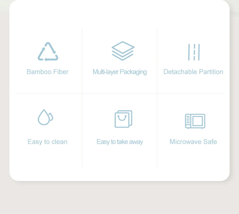 This lunch box is made of eco-friendly bamboo fiber and PP materials, providing three options: single-layer, 2-in-1 double-layer, and 3-in-1 double-layer to meet different user needs. Its sealed design ensures the freshness of the food, while the large capacity allows you to carry more delicious meals. The smooth material makes it easy to clean, and the handle design makes it convenient to carry. Its minimalist and stylish appearance makes it an ideal choice for home, office, or outdoor dining.