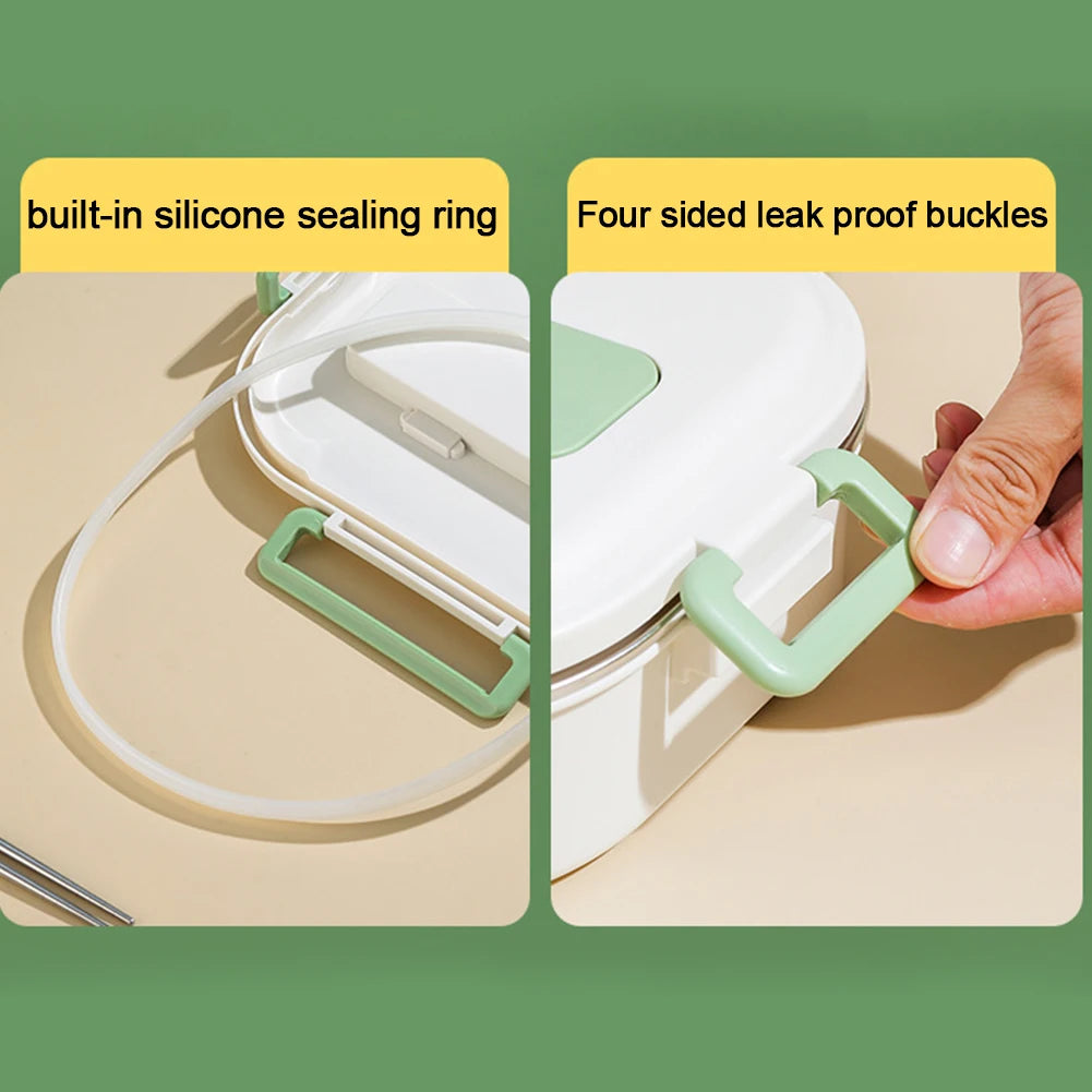 - Leak-proof, portable design: 360° silicone sealing ring with four-sided latches creates a double seal to prevent leaks. The lid doubles as a built-in cutlery box and even a phone holder.
